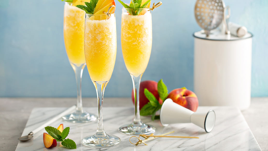 The traditional choice is dry Prosecco which has crisp bubbles with a clean finish that pairs beautifully with peach purée but any chilled dry or extra-dry sparkling wine works well too if you prefer a slight variation in taste.